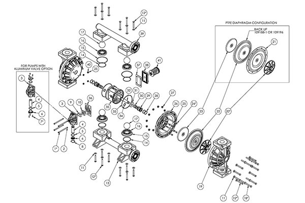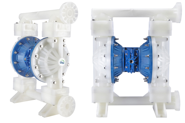 FTI Air Model FT15 pumps features a unique stall free air valve that is simple, rugged and reliable and requires no separate pilot valve or a mechanically operated pilot valve. Bolted construction provides leak-free fluid handling. Pumps are available with polypropylene or PVDF wetted materials. Diaphragms, balls and seats are available in a wide range of materials to provide reliable operation in a wide variety of applications. FTI Air products have fewer parts, simpler design and are less prone to failure.